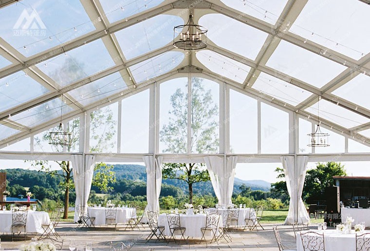 邁斯特篷房廠家所研發(fā)生產(chǎn)的婚禮帳篷采用優(yōu)質(zhì)鋁合金作為篷房框架,雙面涂層PVC布作為篷布,具有安全穩(wěn)固等特點(diǎn),能夠有效應(yīng)對(duì)戶外多種天氣情況,保障新人及來訪賓客的安全。
