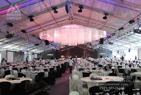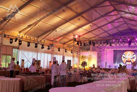 邁斯特篷房公司銷售各類規(guī)格尺寸、形狀的婚禮婚慶帳篷,跨度3-50m,長度可按3或5m的倍數(shù)無限延伸,如果有特殊的尺寸需求,還可以根據(jù)客戶的要求量身定做。