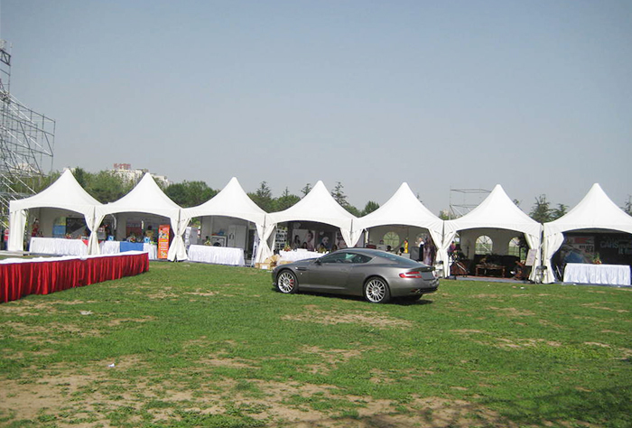 尖頂篷房造型多樣,款式別致。同時具備臨時性,靈活性,可移動性三大特點。搭建安裝快捷,方便。既可單獨使用,也可以多個數(shù)量和尺寸進行組合,滿足不同場合不同活動的需求。