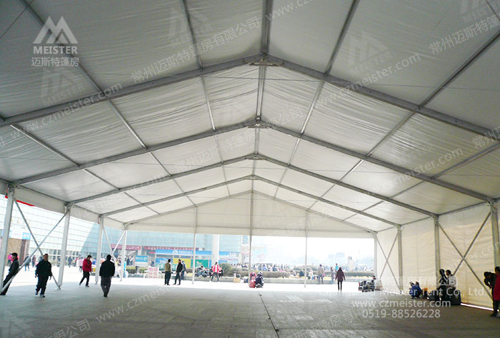 展覽篷房相比室內(nèi)展館而言,在尺寸面積方面具有更多的可能性。邁斯特篷房廠家的會展篷房跨度從3-50m不等,長度可按3m5m的倍數(shù)無限延伸。這是一款跨度15米的展覽篷房,如果您有更大的會展需求,我們也可以為您量身定制,滿足您的需求。