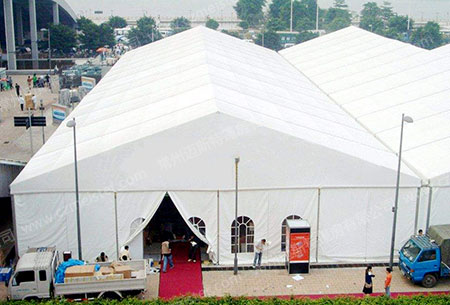 這是一款跨度為20米的家具展帳篷,可以滿足中小型展會的常規(guī)需求,如果需要其他特殊尺寸,我們也可以提供定制服務。