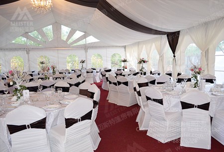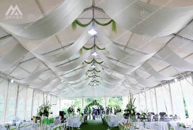 • 婚禮婚慶大棚跨度可以從3到50米不等,長度可以按3米或5米的倍數(shù)無限延伸,即便是大型婚禮宴會也可以使用它。