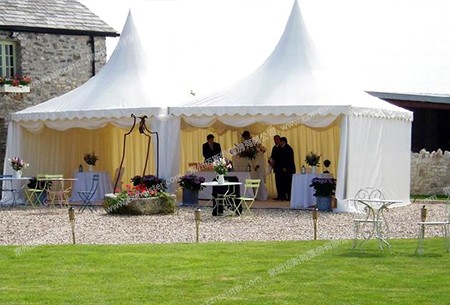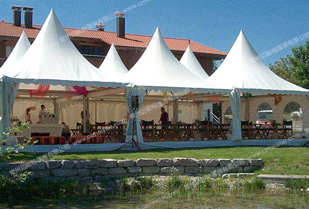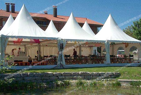 尖頂篷房造型多樣,款式別致。同時具備臨時性,靈活性,可移動性三大特點。搭建安裝快捷,方便。既可單獨使用,也可以多個數(shù)量和尺寸進行組合,滿足不同場合不同活動的需求。
