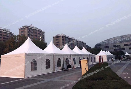 尖頂篷房以其個性的造型被人們命名所認識,而一般的小型活動都會使用這種尖頂篷房。小型活動尖頂篷房使用范圍廣,工地邊上休息區(qū)工作區(qū)、臨時貴賓接待、小型家庭生日會等都能看到它的身影。篷房占地面積小,空間利用率高,遮風避雨防輻射,搭配上一些簡單的設(shè)施如桌椅等就能變成一個簡單的臨時活動場所使用,而且搭建時間短,運輸方便可快速投入使用,相比尋找一些固定場所舉辦小型活動還是比較快速的。