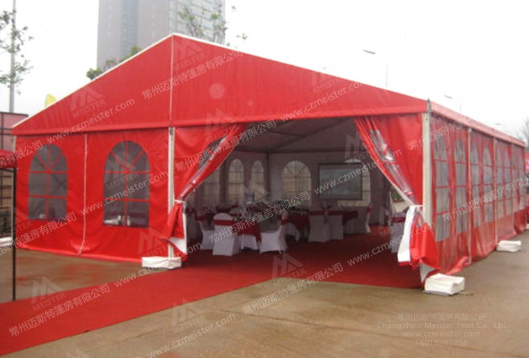 邁斯特篷房公司所生產(chǎn)的婚慶大篷采用優(yōu)質(zhì)鋁合金框架型材,篷布采用雙面涂層PVC篷布,能夠有效抵抗8-10級(jí)大風(fēng),保證婚禮活動(dòng)即便是在惡劣天氣情況下也可正常舉行。我們可以為廣大客戶(hù)提供婚慶大篷定制服務(wù),如果您有特別要求,歡迎來(lái)電咨詢(xún)。