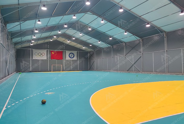 綜合球館篷房是一種臨時(shí)或半永玖性的體育場(chǎng)館設(shè)施,采用高強(qiáng)度航空鋁合金結(jié)構(gòu),安全、耐用、環(huán)保,可以滿足多種室內(nèi)運(yùn)動(dòng)項(xiàng)目的要求,如籃球、足球、羽毛球、乒乓球、冰球、射箭等。