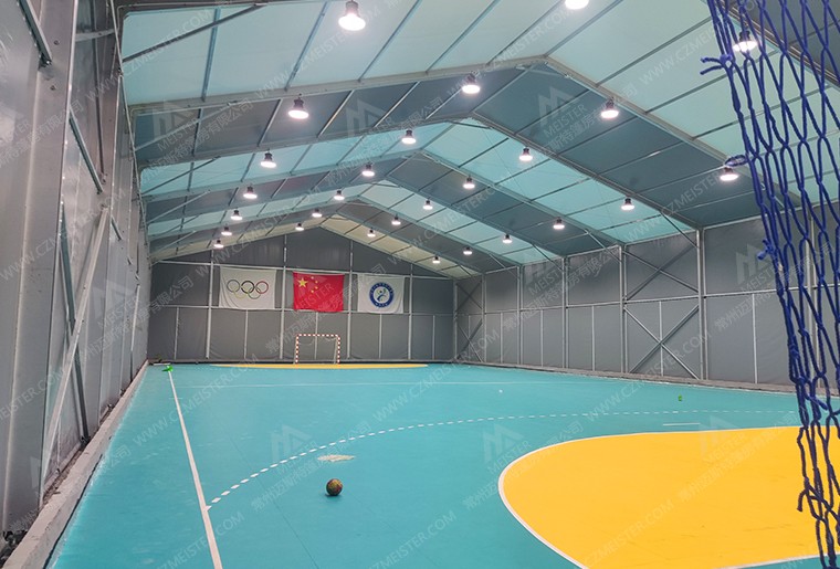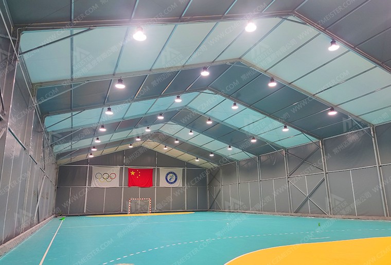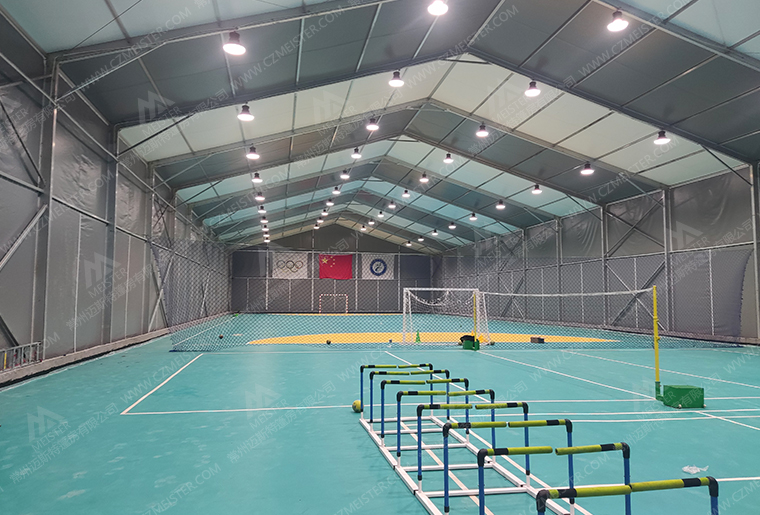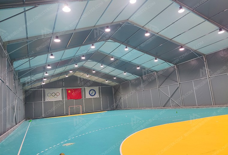 5. 多功能性:篷房體育館可以滿足多種室內(nèi)運(yùn)動(dòng)項(xiàng)目的要求,包括籃球、足球、羽毛球、乒乓球、冰球、射箭等,實(shí)現(xiàn)一館多用的功能。