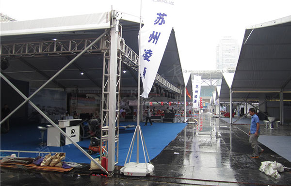 在戶外無論舉行哪一種活動,天氣因素都是重要的影響,所以車展篷房首先要起到確保展會、展覽活動正常舉行的作用。目前主流的車展篷房都是采用鋁合金的篷房結構,邁斯特的鋁合金材質是經過專業(yè)機構的風力測試和破壞測試,所以可以面對惡劣天氣也相當安全穩(wěn)固。而篷布是采用刀刮涂層技術的PVC篷布,可以抗風撕裂、遮光擋雨,所以邁斯特搭建的車展鋁合金篷房可以防止風雨的來襲,確?;顒幽苋缙谌缳|進行!